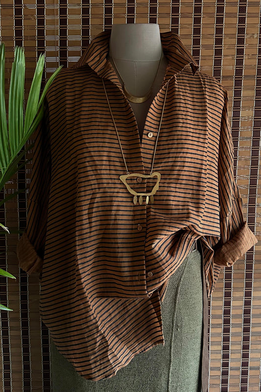 Stripes Apple Hem Boxy Shirt